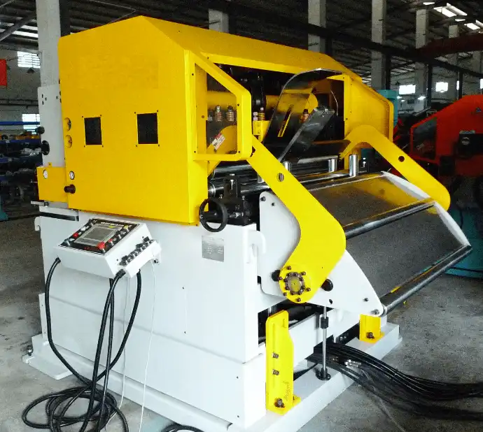 - Material loop control: through induct material loop to feedback signal by the infrared photoelectricity induction switch under press arm, to control uncoiler spindle of start/stop, to ensure enough buffer material loop between uncoiler and straightener.